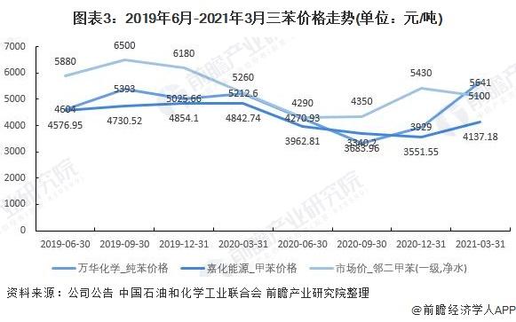 2021年,纯苯价格上涨明显,从2020年底的3929元/吨升至5641元/吨,涨幅达43.6%;甲苯价格小幅上涨,涨幅达16.5%;邻二甲苯价格小幅下降,较2020年底下降6%。