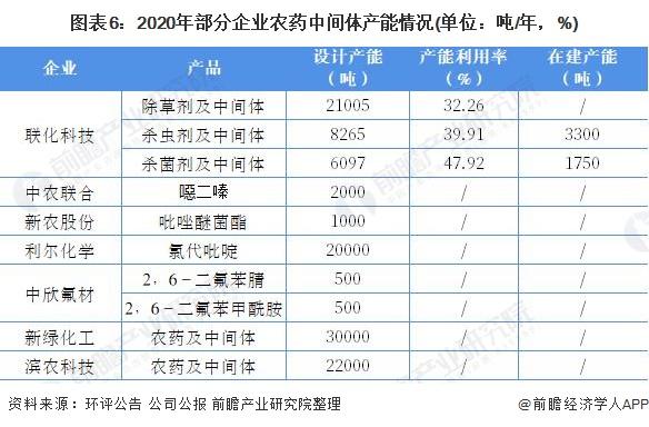 供应方面,由企业年报发布的农药及中间体产能,以及环评公告发布的农药中间体项目环境影响评价信息公示,获知一些企业农药中间体的产能情况: